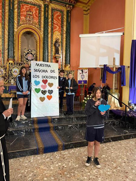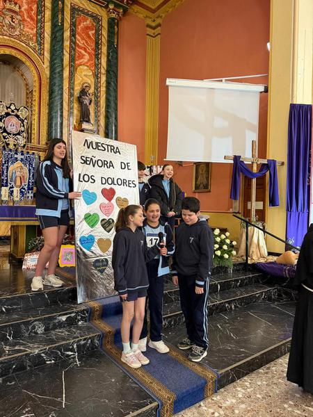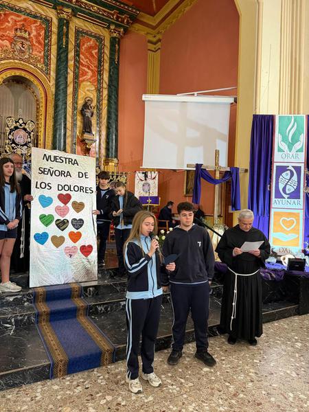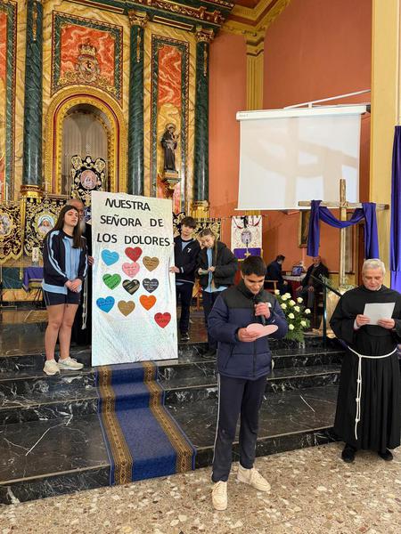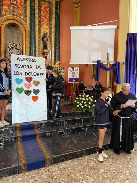 Este año hemos celebrado nuestra tradicional jornada del Viernes de Dolores, comenzando con un momento de oración en el convento junto a todo el alumnado, donde cada clase participó con un gesto simbólico de reflexión.